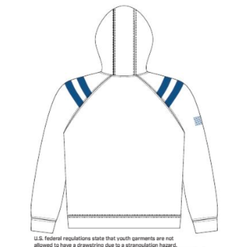 • Drawstring hood (adult sizes only per federal youth safety regulations)